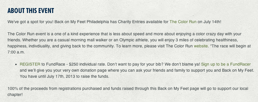 See below for an example of how our Philadelphia charity partner, Back on My Feet, used our charity registrations: